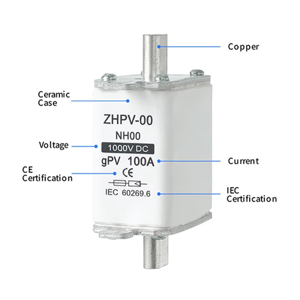 Az NH00 fotovoltaikus rendszer egyenáramú 1000V 32~100A biztosítékcsatlakozója alkalmas a fotovoltaikus egyenáramú rendszerek túláram elleni védelmére. Ez a termék maximum 1000V DC feszültséget és 32-100A áramtartományt támogat. Kifejezetten napelemes erőművekhez és energiatároló rendszerekhez készült, és hatékonyan képes megelőzni a túlterhelés vagy rövidzárlat által okozott berendezések károsodását.