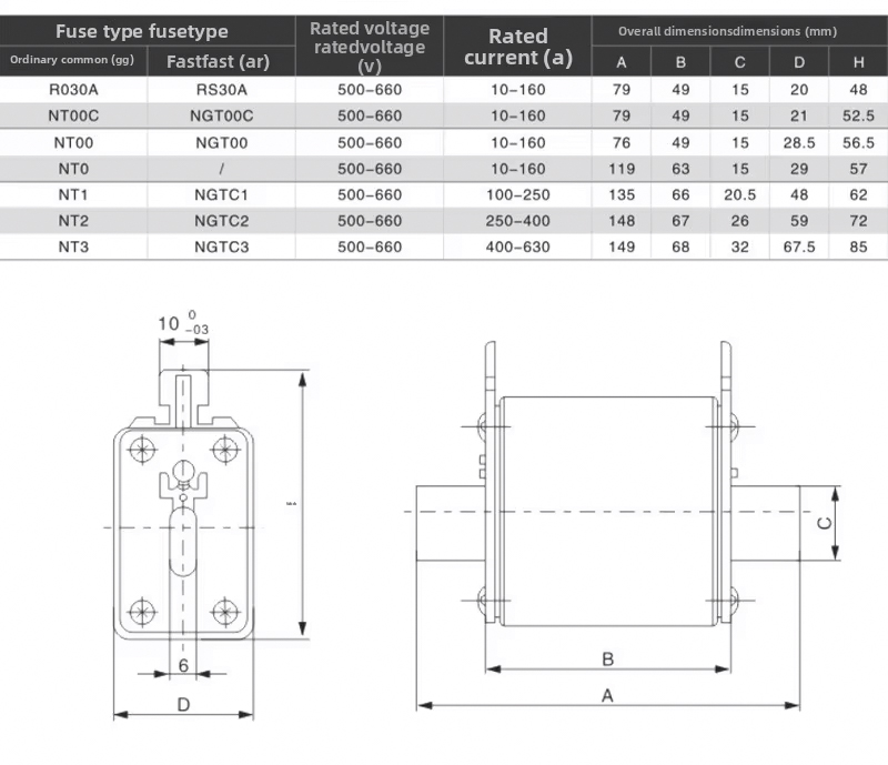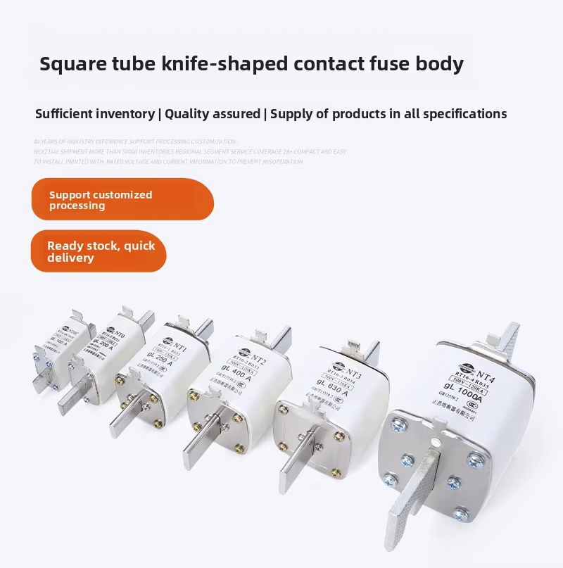 Az NT/NH sorozatú négyzet alakú kerámia biztosítékokat általában ipari elektromos berendezésekben, energiaellátó rendszerekben és elektronikus berendezésekben használják, hogy megvédjék az áramköröket a túlterheléstől és a rövidzárlattól.