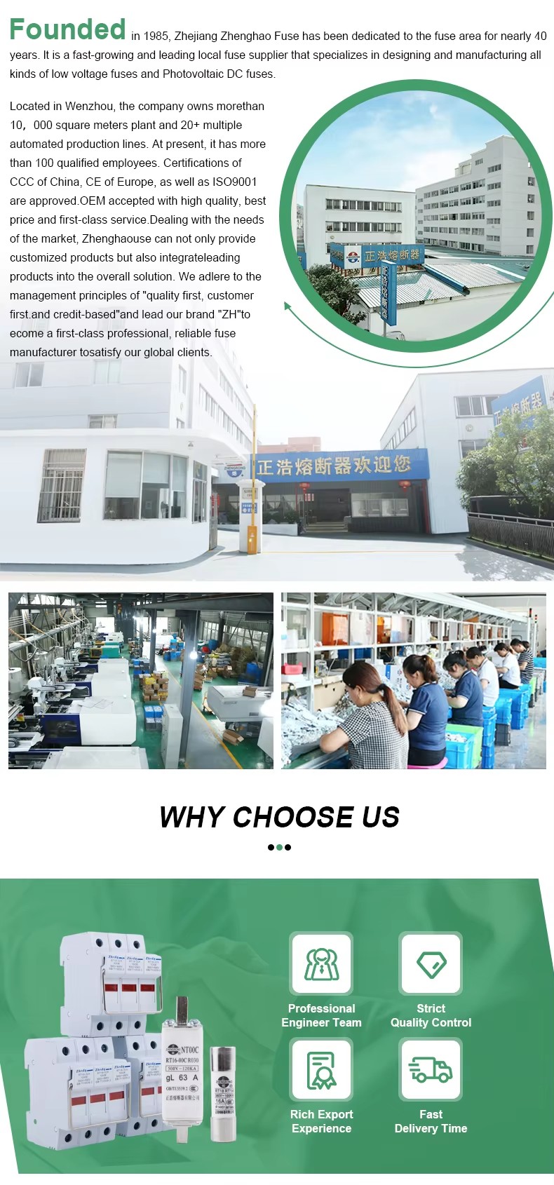 A piaci válasz miatt a Zhenghao Fuse egy tartós UK5-Hesi biztosítéktulajdonot tervezett, amely kiváló minőségű anyagokból készült, a hosszú távú használat biztosítása érdekében. Az UK5-Hesi biztosítéktulajdonos erős felépítése ellenáll a környezeti tényezőknek és fenntarthatja a teljesítményt az idő múlásával. A gyors és biztonságos csatlakozáshoz tervezett hatékony csatlakozása könnyen telepíthető és karbantartható, hatékonyan csökkentve az állásidőt az elektromos beállítás során.