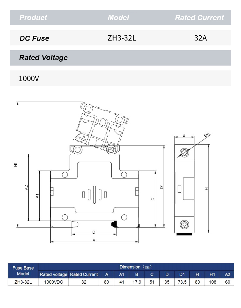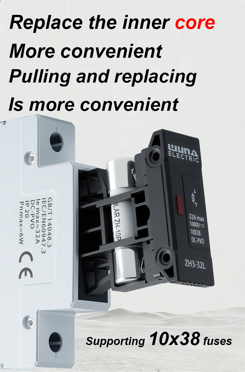 A ZH32L DC 1000 V biztosítéktartó egy nagy teljesítményű alkatrész, amelyet arra terveztek, hogy megbízható védelmet biztosítson az elektromos áramkörök számára fotovoltaikus és egyéb egyenáramú alkalmazásokban. A robusztus felépítésnek és a kiváló szigetelésnek köszönhetően a ZH32L DC 1000 V biztosítéktartó alkalmas az 1000 V DC névleges biztosítékok biztonságos elhelyezésére, hatékonyan megelőzve a túláram és a rövidzárlat okozta károkat.