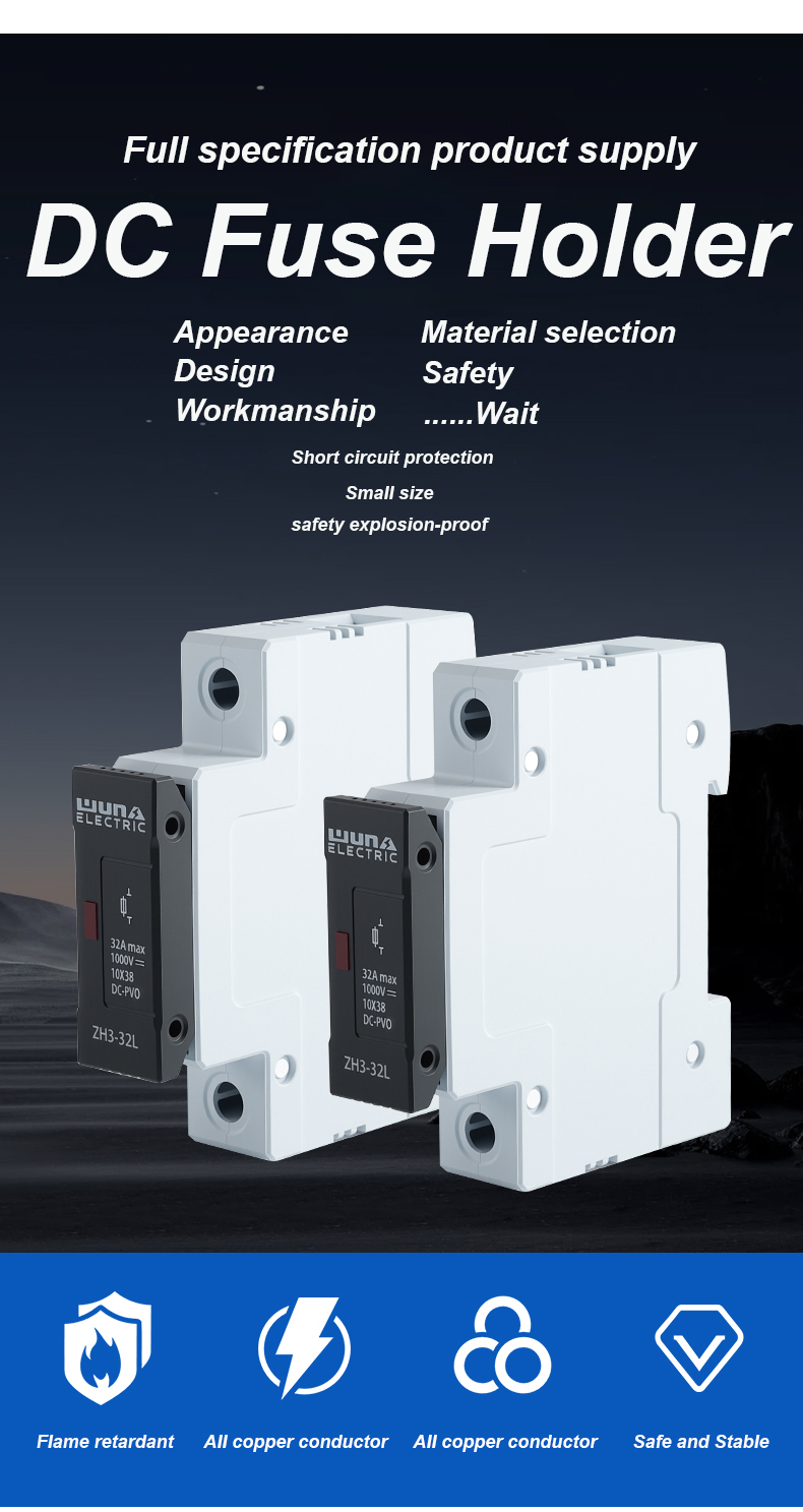 A fotovoltaikus cellák ZH32L DC 1000V biztosítéktartóját kifejezetten fotovoltaikus (PV) rendszerekben való használatra tervezték, elsősorban a napelemek védelmére. A napelemek törési feltétele, hogy a hibás napelemcsomag hatékony feltörése mellett a többi, normálisan működő napelemcsomag működését nem befolyásolja. A ZH32L DC 1000 V biztosítéktartó biztosíték biztonságosan megvédheti a PV modult és vezetőit a fordított túlterhelési áram veszélyétől függetlenül attól, hogy az egyenáramú tápegységet veszély fenyegeti. A nagyteljesítményű napelem-csomagok iránti kereslet növekedésével a piacon, a fotovoltaikus rendszerek és a szélenergia-hálózathoz csatlakoztatott energiatermelési technológia népszerűsítésével és fejlesztésével a nagyfeszültségű egyenáramú biztosítékok alkalmazása a napelemes rendszerek biztonságos, hálózatra kapcsolt működésének védelme érdekében fontos nemzetközi műszaki intézkedéssé vált.